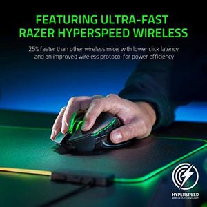 The Razer Naga V2 Pro is a high-end MMO gaming mouse designed for gamers who value customization and precision. Its standout feature is the set of three magnetic side plates offering 19 programmable buttons in total, making it ideal for complex games requiring many commands at your fingertips. The Focus Pro 30K optical sensor ensures accurate tracking on almost any surface, including glass, which is great for consistent performance. The mouse switches are optical Gen-3, known for fast 0.2ms response and durability rated for 90 million clicks, reducing issues like double-clicking often found in other mice.