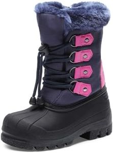 Lands' End Waterproof Kids Snow Boots are a solid choice for toddlers needing warm, waterproof footwear for winter activities. The boots feature warm fleece lining and patented water-resistant technology, providing good insulation to keep little feet cozy in cold weather. Waterproof synthetic materials help prevent moisture from seeping in, making them suitable for snowy or wet conditions. The rubber sole is designed for strong traction with a rugged, slip-resistant tread, which is important for safe walking on slippery surfaces.